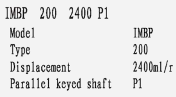 | TYP | (ml/r) TEORYCZNE PRZEMIESZCZENIE | (MPa) Oceniono CIŚNIENIE | (MPa) SZCZYT CIŚNIENIE | (Nm) Oceniono MOMENT OBROTOWY | (Nm/MPa) SPECYFICZNY MOMENT OBROTOWY | (obr/min) PRĘDKOŚĆ MLX | (Kw) Oceniono PW | (kg) WAGA |